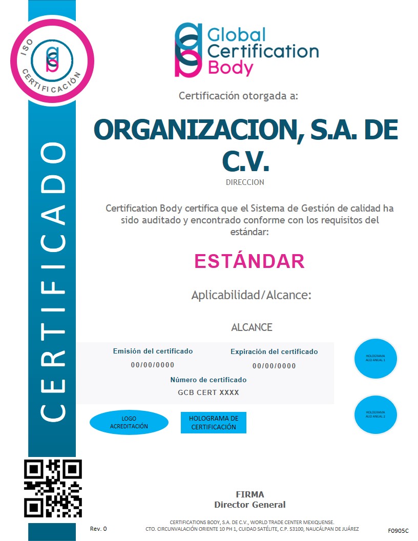 Holograma otorgada por GCB al obtener la certificación